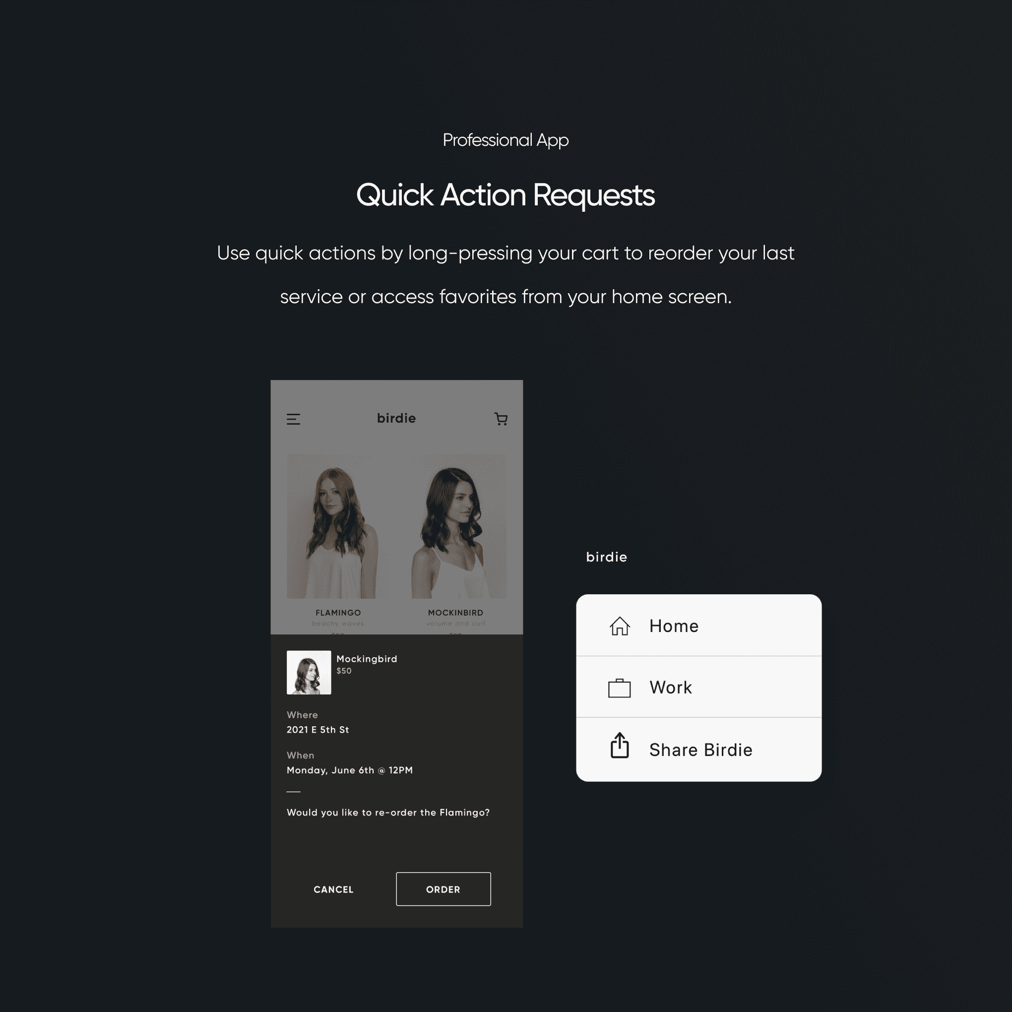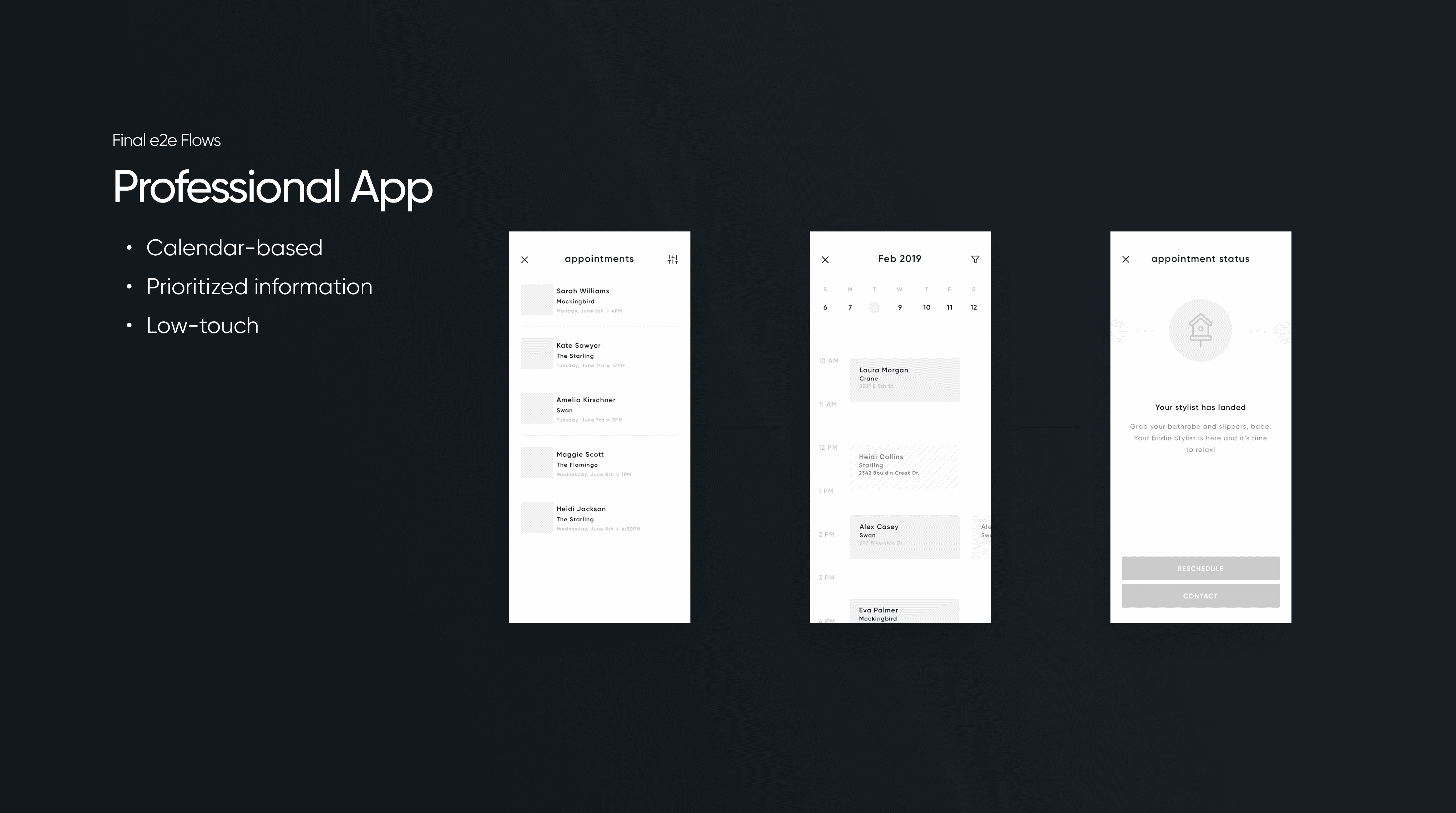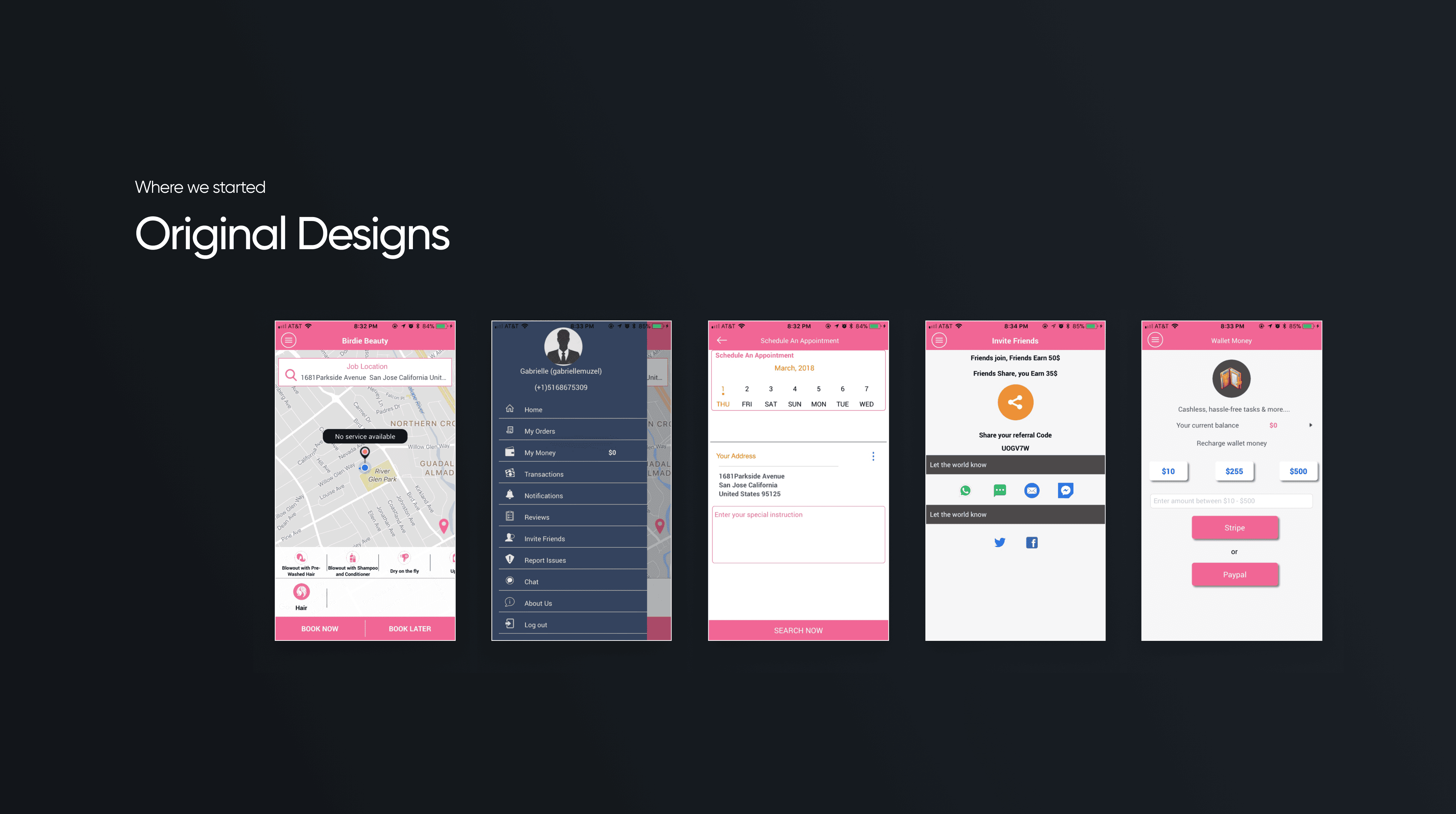 Birdie was an on-demand beauty services app connecting users with licensed professionals for at-home appointments. I was brought on as the solo designer to lead a full redesign of both the customer and professional apps. The original experience was a clunky, off-brand Uber clone — functional, but far from usable.