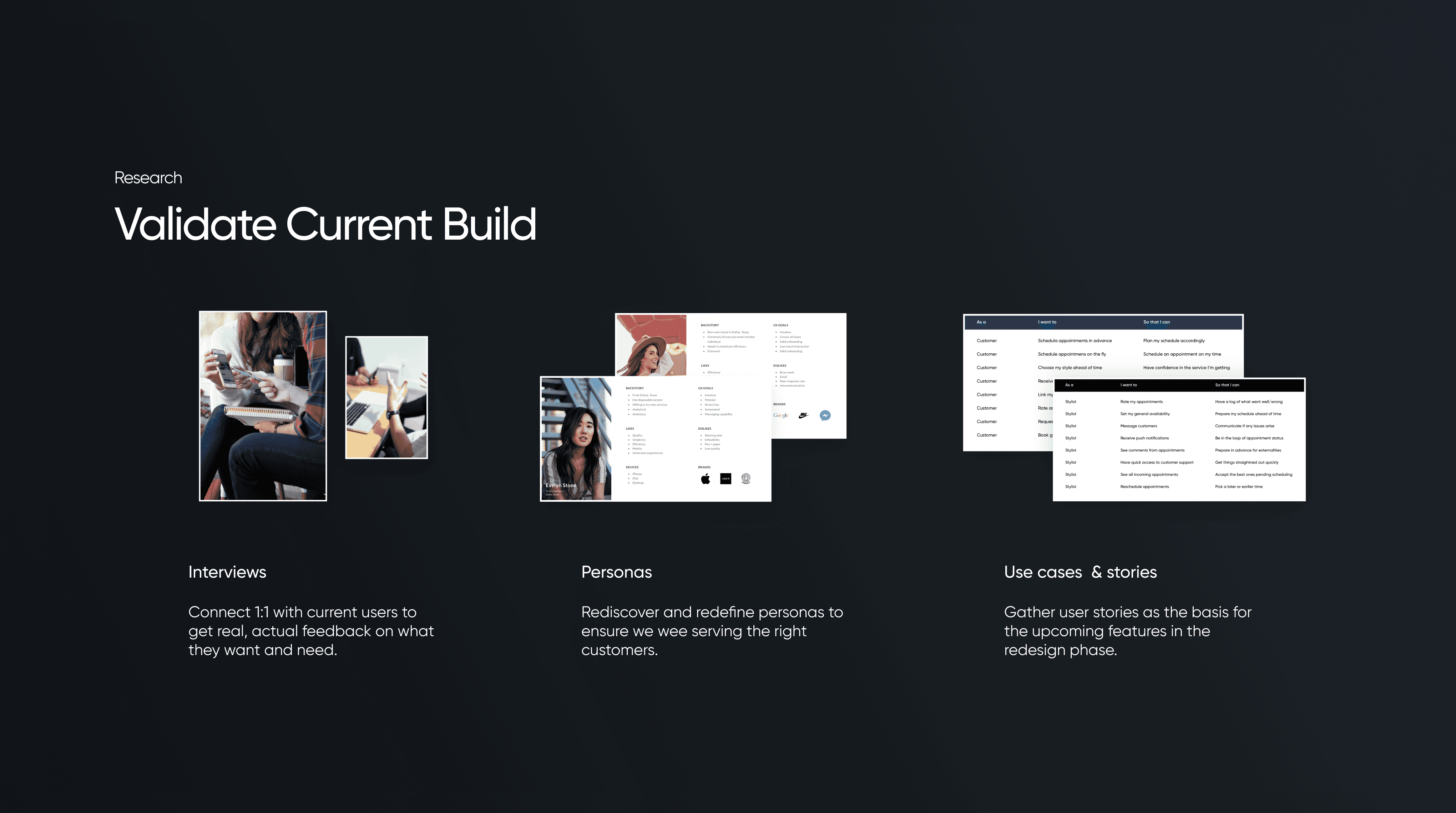 Over six months, I overhauled the UX and visual design, redefined personas, and rebuilt the product from scratch — transforming it from a map-based booking app into a shopping and appointment management platform that actually aligned with how users think and behave.