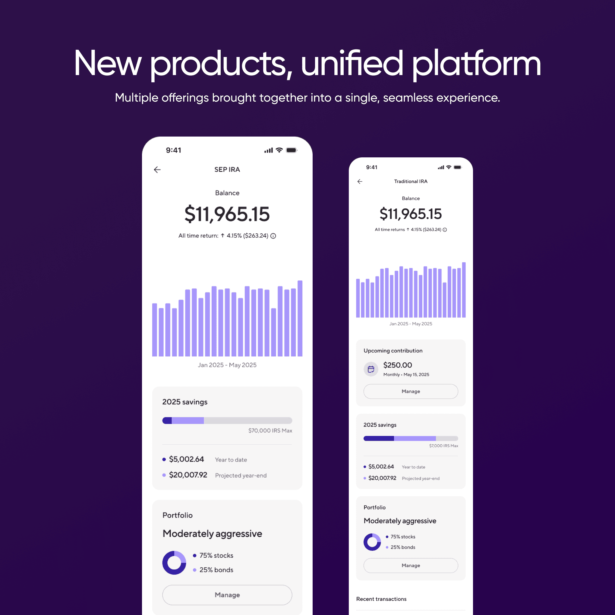 We introduced support for new product lines — including Reserves (emergency savings), HSA, and Investments — and reimagined the UX to unify these under one cohesive system. The result was a mobile experience that not only helped users plan for retirement, but also manage their day-to-day financial health, all from a single app.