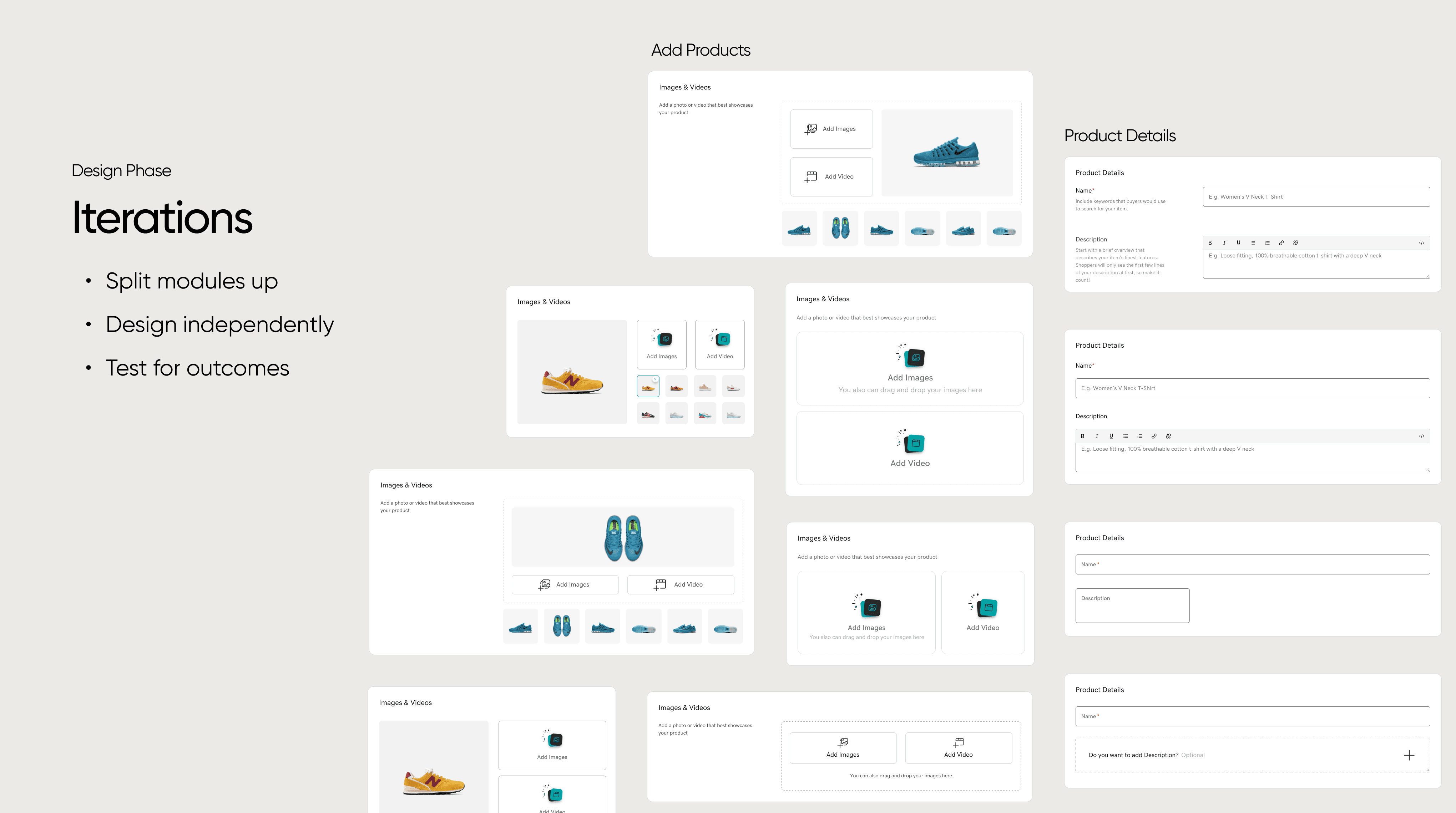 I led a team of three designers in redesigning GoDaddy’s ‘Add Products’ experience — the central flow merchants use to create and manage product listings. Products 3.0 was a top-to-bottom overhaul of the system, aimed at making it faster, more intuitive, and more scalable for users managing large catalogs across multiple sales channels.