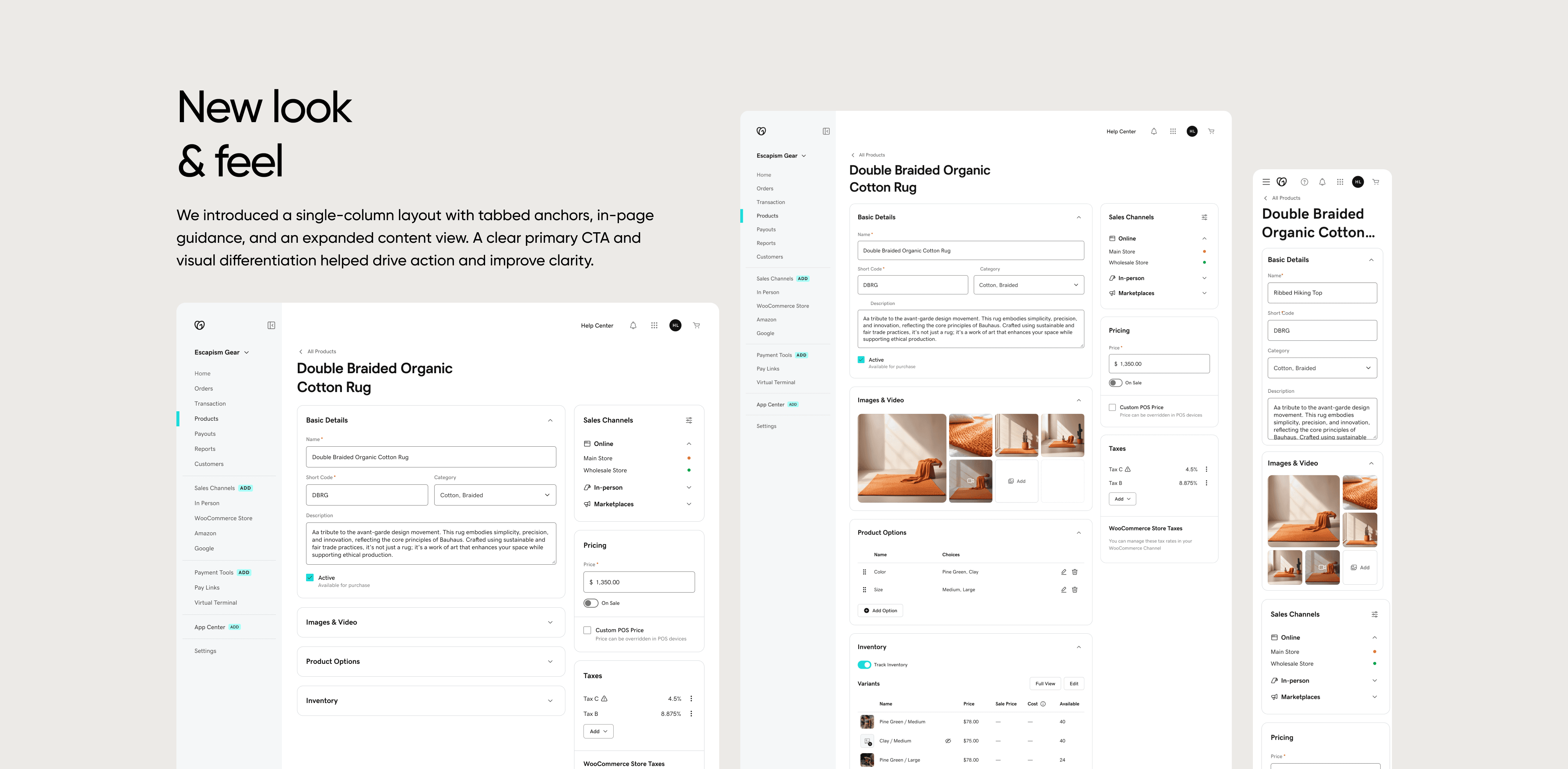 The legacy product creation flow was clunky, outdated, and underperforming. Content was hidden behind tabs, guidance was minimal, and the hierarchy was hard to parse — leading to errors, low completion rates, and overall user frustration.